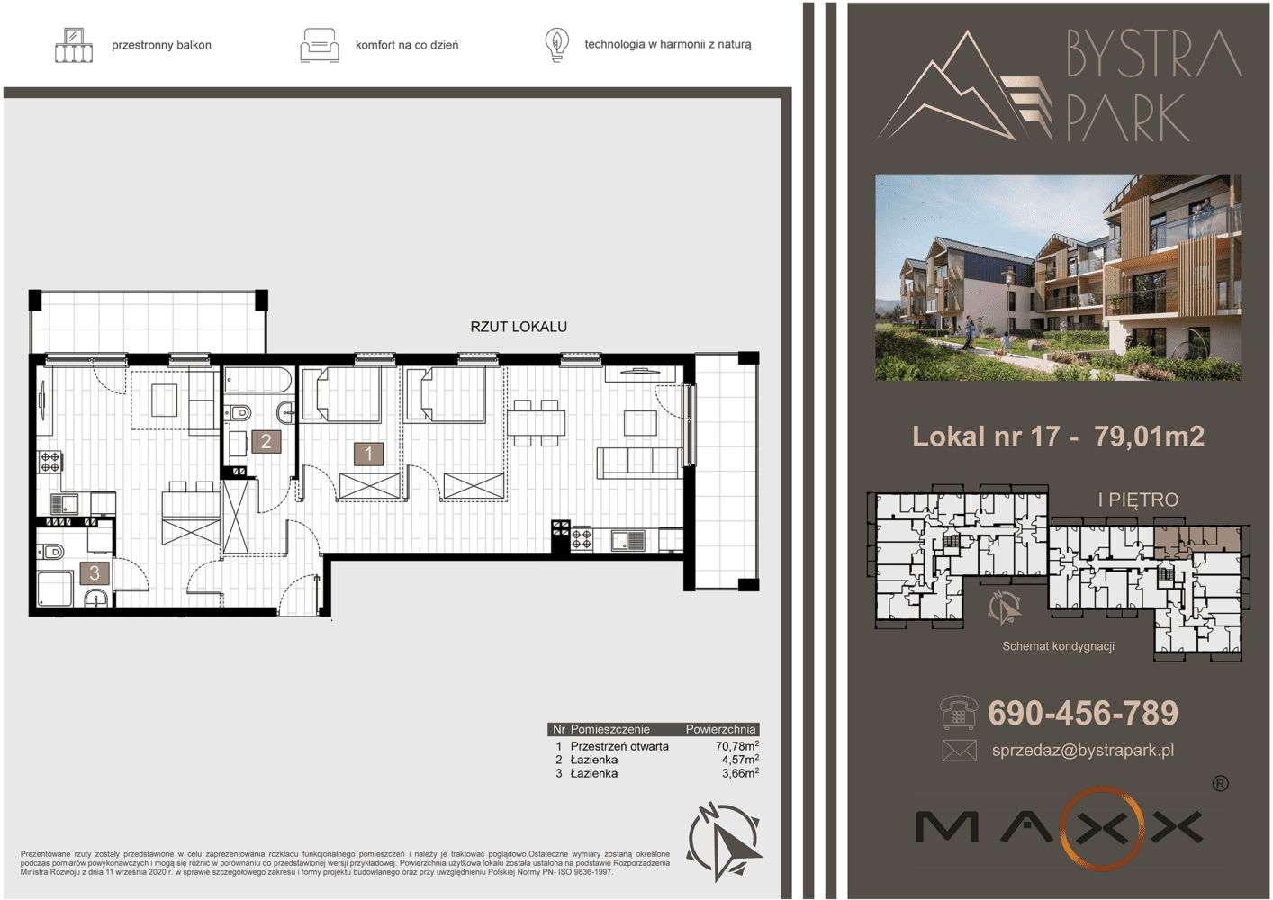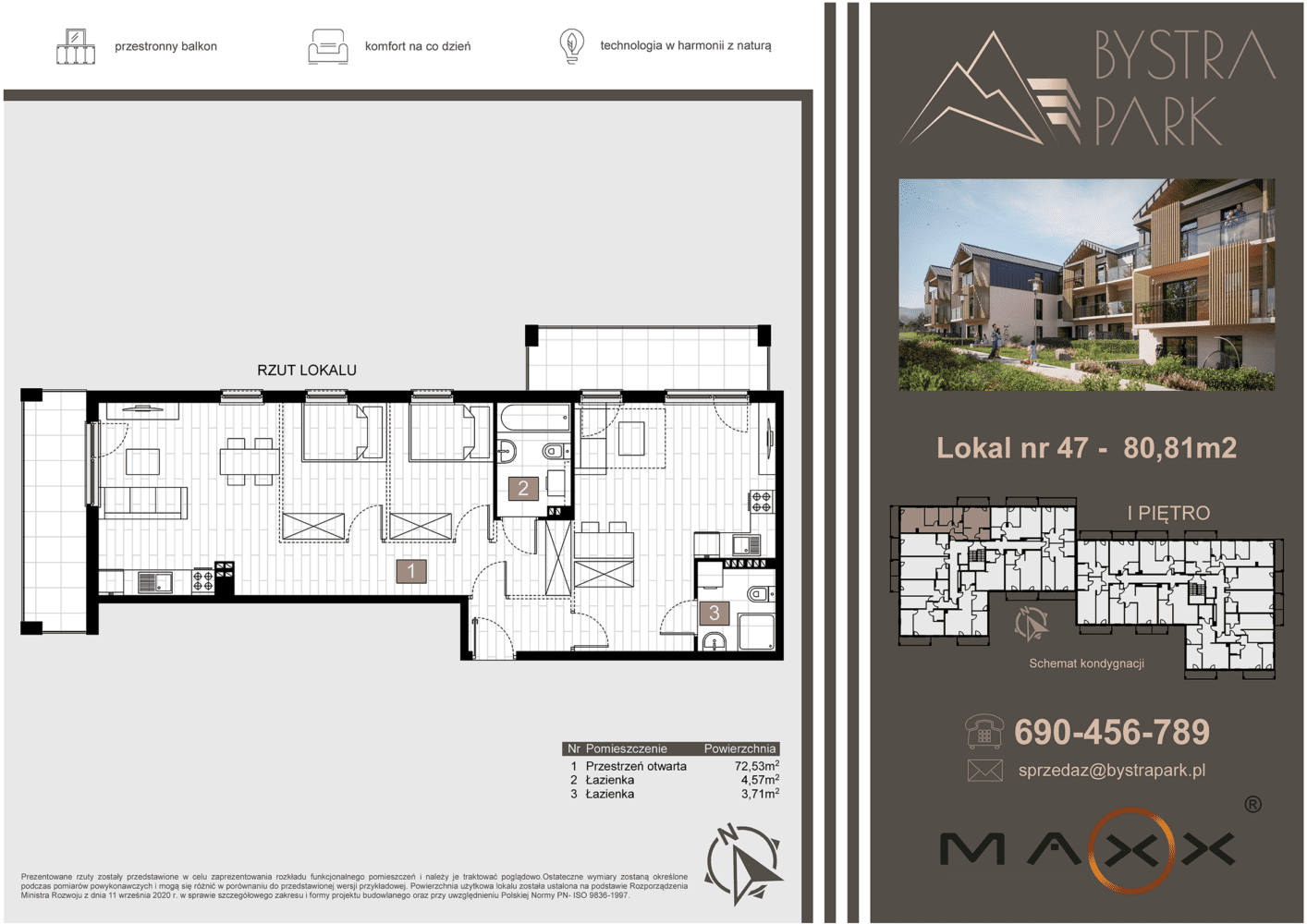Apartament 3-pokojowy – 77.97m2 | I piętro