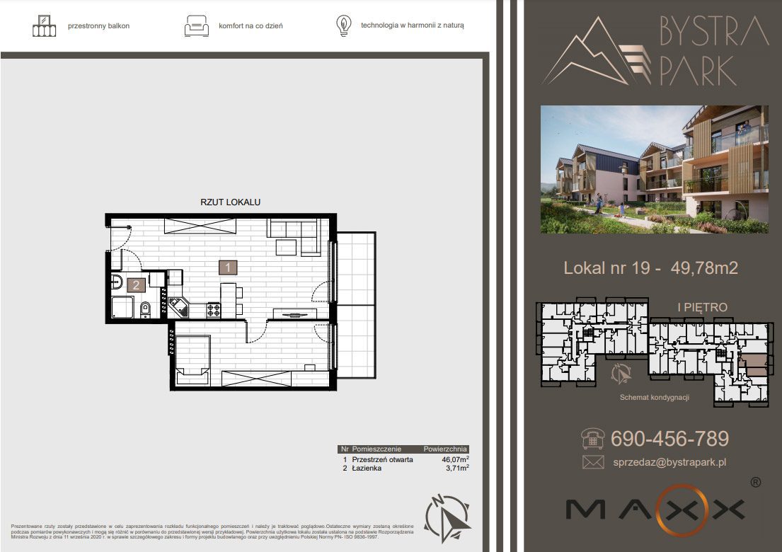Apartament 2-pokojowy – 49.15m2 | I piętro