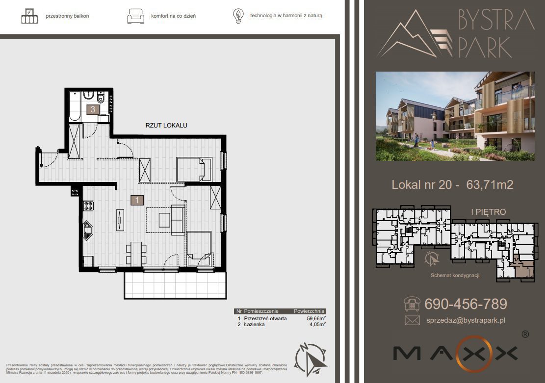 Apartament 3-pokojowy – 62.87m2 | I piętro