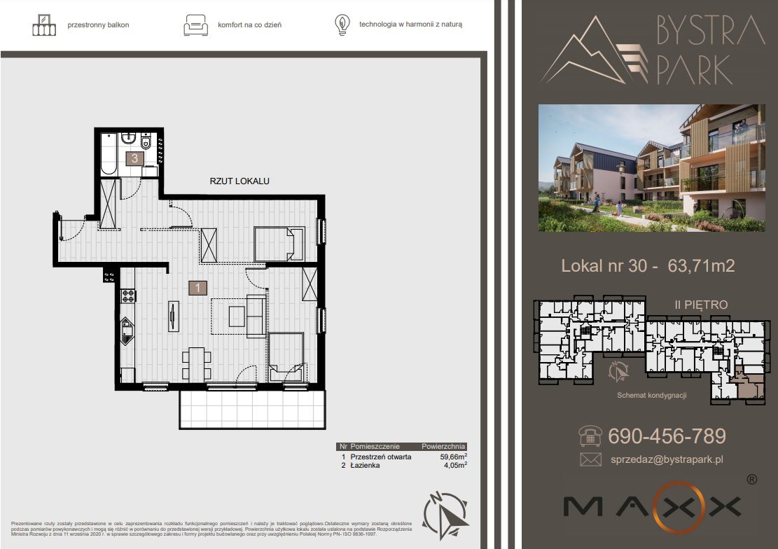 Apartament 3-pokojowy – 62.46m2 m² | II piętro