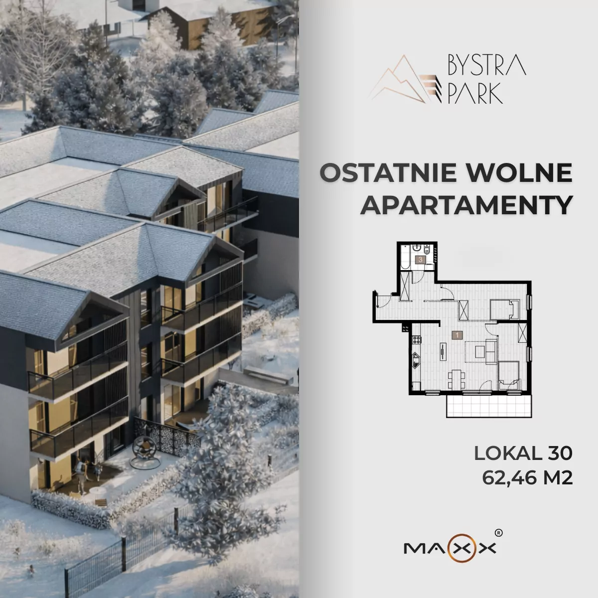 Apartament 3-pokojowy – 62.46m2 m² | II piętro