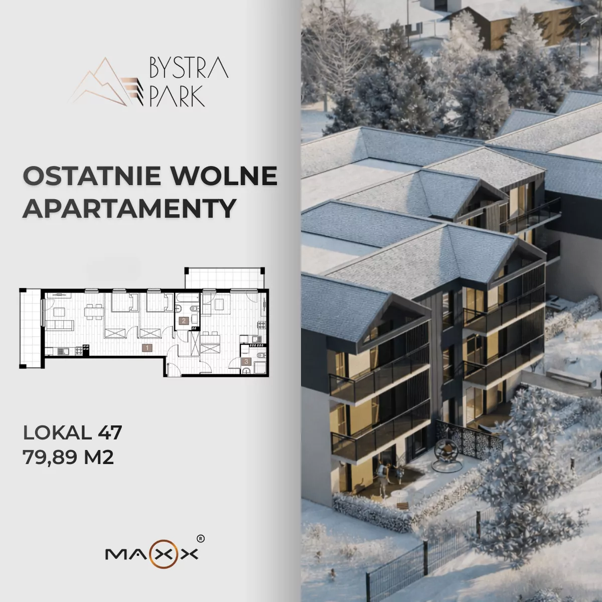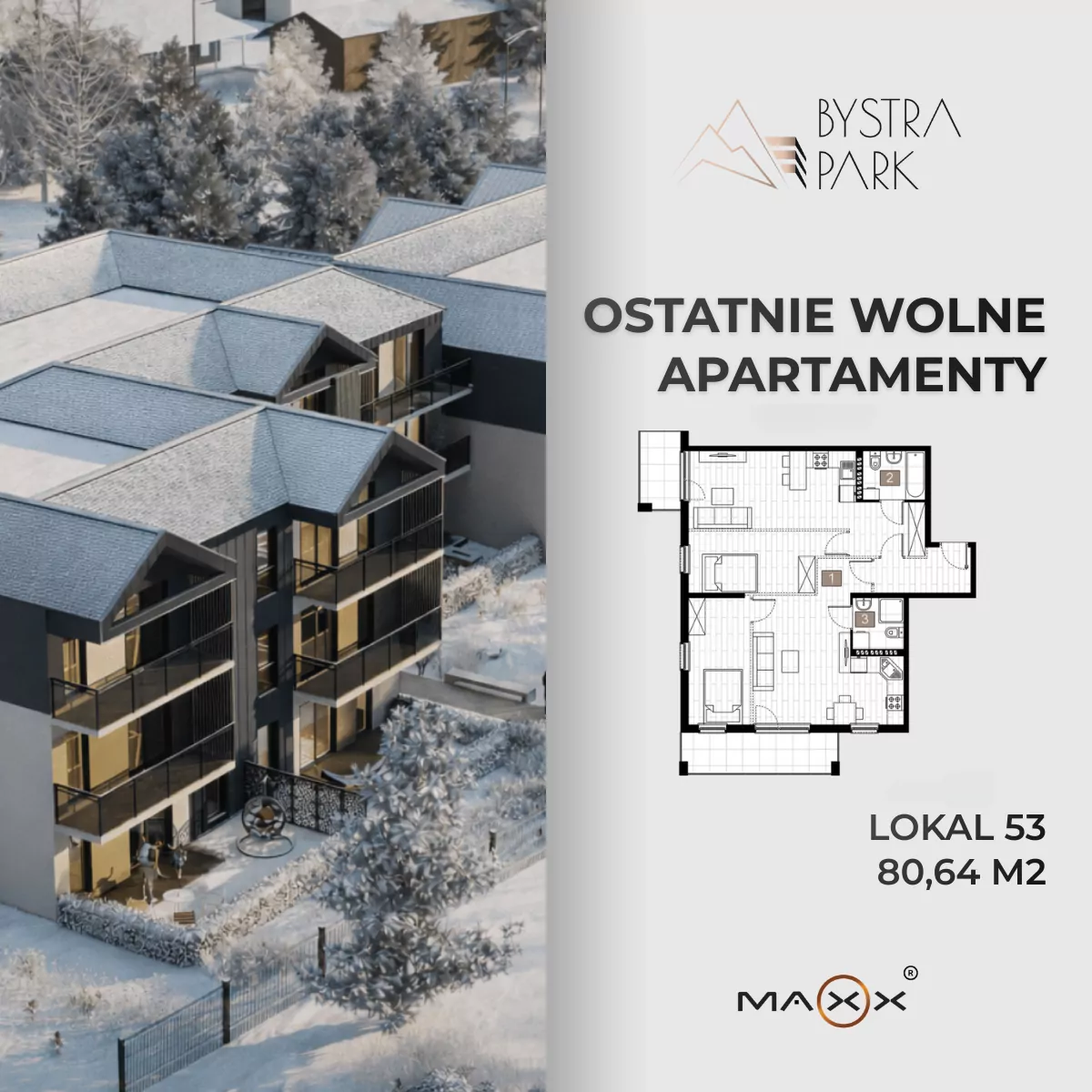 Apartament 3-pokojowy – 77.97m2 | I piętro