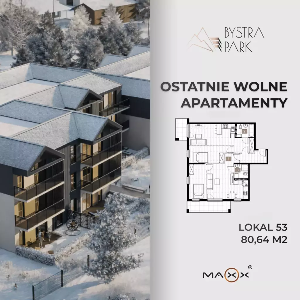 - Apartament z dwoma tarasami – jeden z widokiem na wschód, a drugi z widokiem na północ